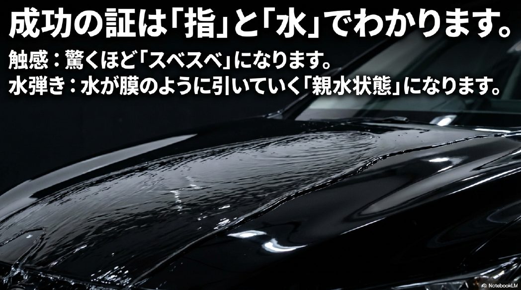 親水確認をして水を拭き上げた後、ぜひボディを指の腹で優しく撫でてみてください。「キュッ」と引っかかる感じではなく、驚くほど「スベスベ」「ツルツル」とした感触に変化しているはずです。この劇的な触感の変化こそが、多くのユーザーを虜にするDeep Baseの最大の魅力です。